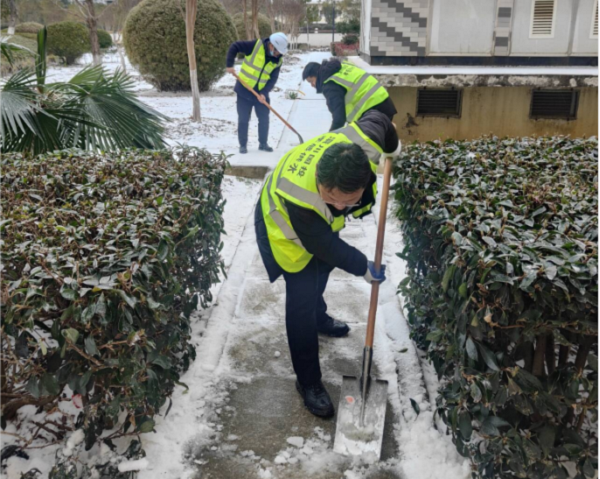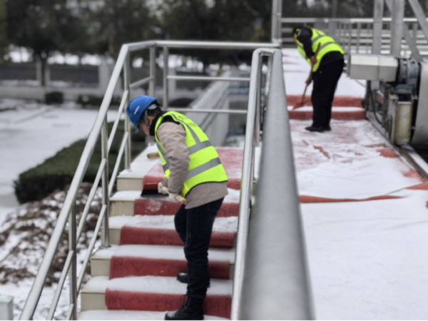 以雪為令,雪停路清。22日早上7點(diǎn),公司派出5名志愿服務(wù)隊(duì)員參與公交站臺(tái)掃雪除冰行動(dòng),有力保障群眾公交出行安全。除此之外,為了保證生產(chǎn)廠區(qū)道路暢通,公司采取有力舉措,仙女湖水廠、二水廠、一水廠、龍宮等多個(gè)辦公區(qū)域共調(diào)動(dòng)工作人員100余名和2臺(tái)鏟車,采取撒鹽破冰、鏟雪等方式,確保生產(chǎn)及辦公區(qū)域道路暢通。