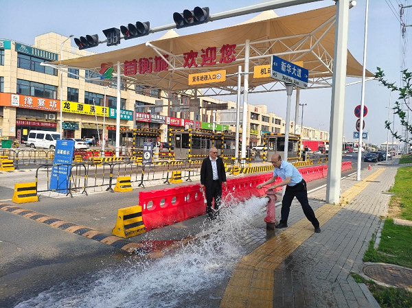在首衡城農(nóng)產(chǎn)品交易中心,工作人員對市場入口和市場內(nèi)各貿(mào)易場所的消防設施進行了檢查,逐一開閘試水,確保水源通暢,檢查栓體各配件是否完好,有無松脫,閘閥能否正常啟閉等。