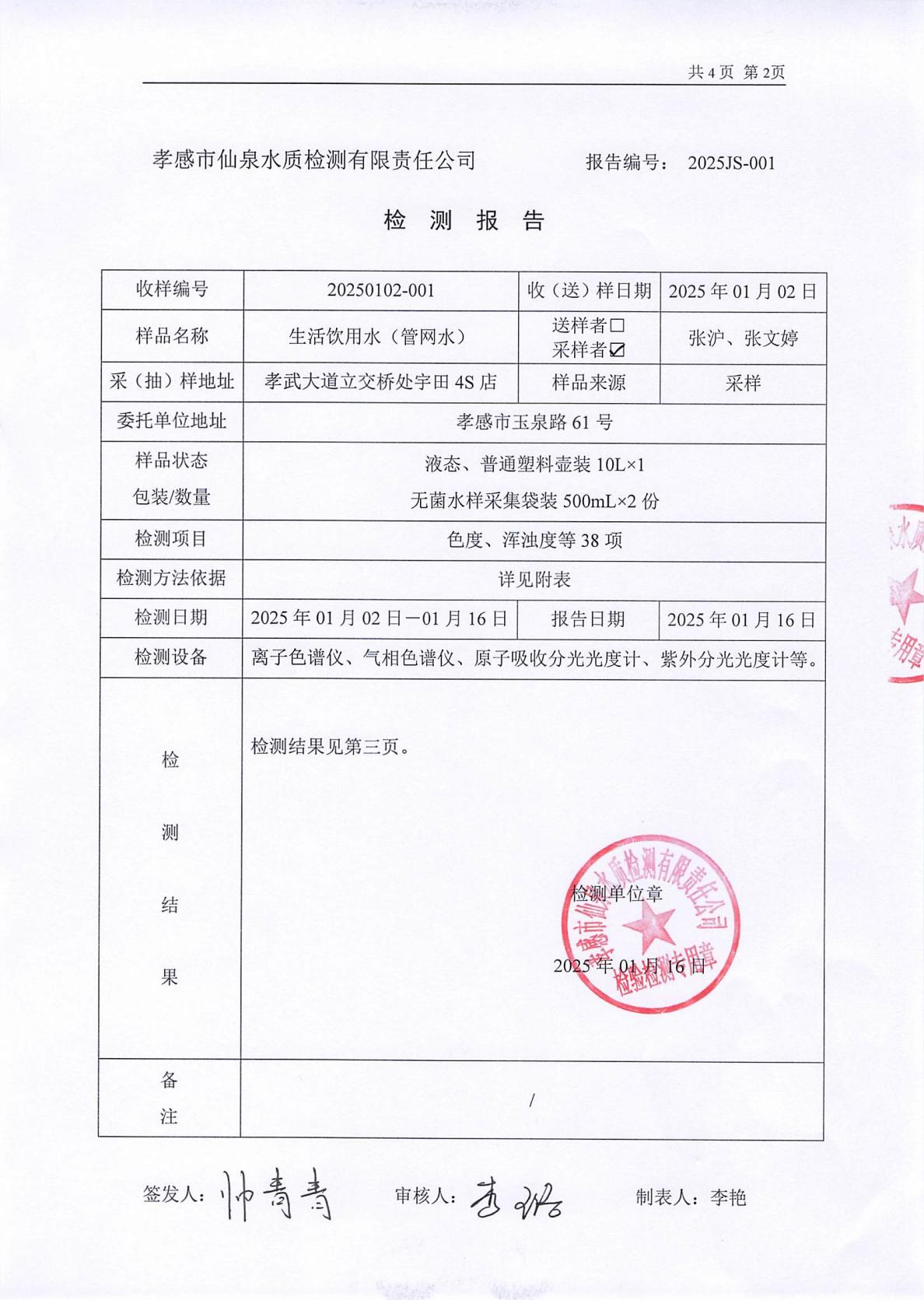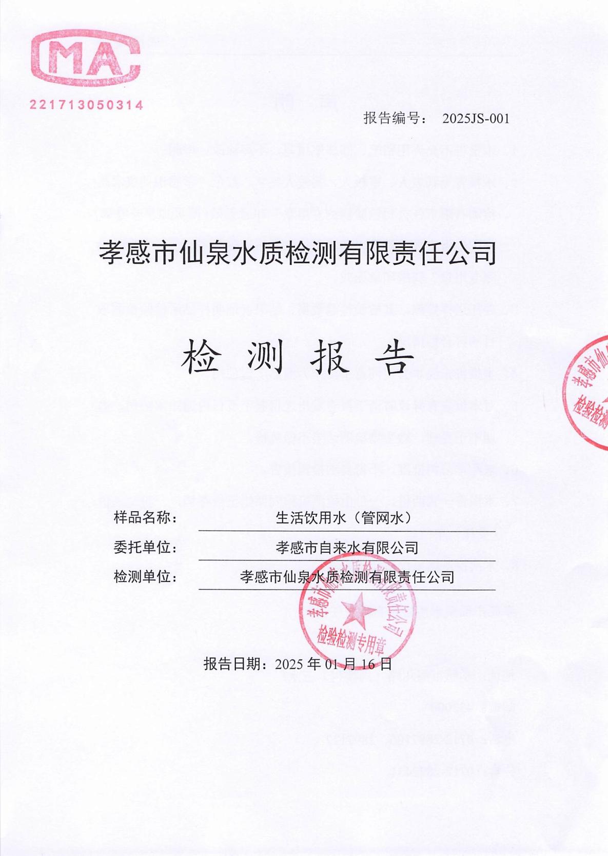 2025年1月檢測(cè)報(bào)告